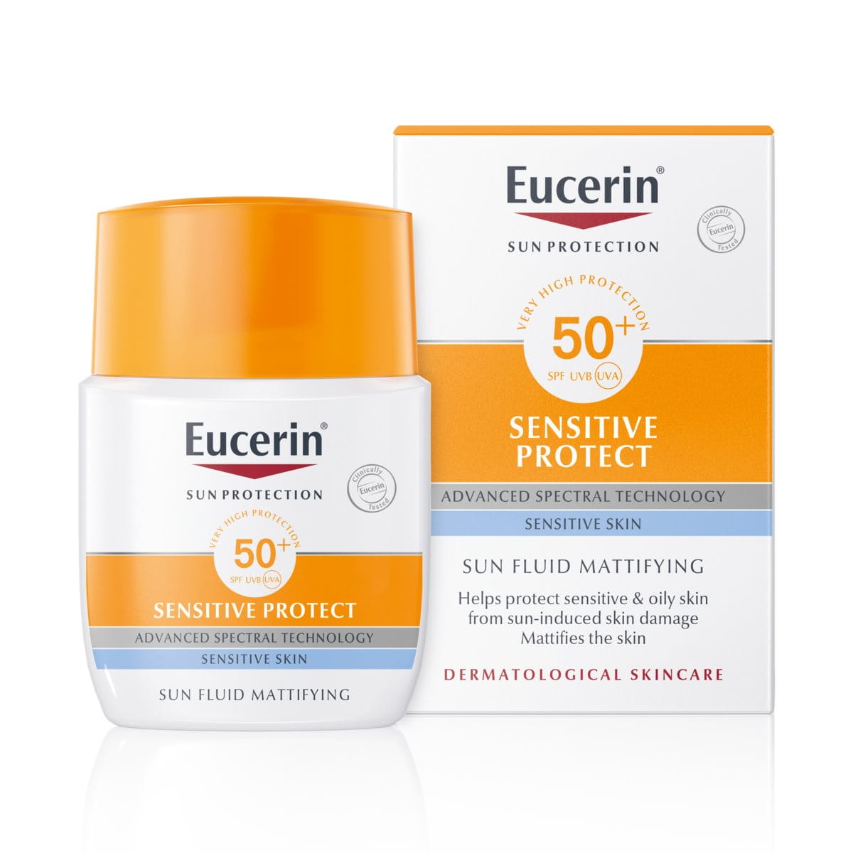Eucerin Sensitive Protect Sun Fluid Mattifying SPF50+ is an everyday sunscreen that protects and mattifies sensitive and oily skin. The Advanced Spectral Technology combines broadband and photostable UVA/UVB filters(1) for very high UV protection with Licochalcone A to neutralize free radicals caused by UV and HEVIS light. The sun fluid also includes Glycyrrhetinic Acid which supports skin’s own DNA repair mechanism.