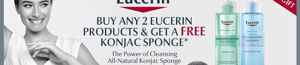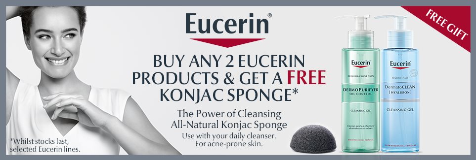 Buy 2 Eucerin Products (excluding Anti Pigment range) in selected London Pharmacies and get a free Konjac Sponge. Free gift to be collected in-store and subject to availability at participating stores.