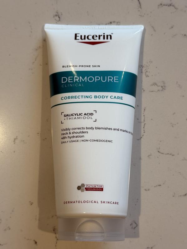 Thiamidol is an exclusive and patented active ingredient developed over a 10-year research project. It reduces post-inflammatory hyperpigmentation by targeting the root cause—the production of melanin in the skin. Many known ingredients have been tested on mushroom enzymes rather than on human skin enzymes. The efficacy of Thiamidol in our Eucerin DERMOPURE CLINICAL Triple Action has been demonstrated in real-life testing. Clinical trials* and other results have shown that our formulation effectively reduces post-acne marks.