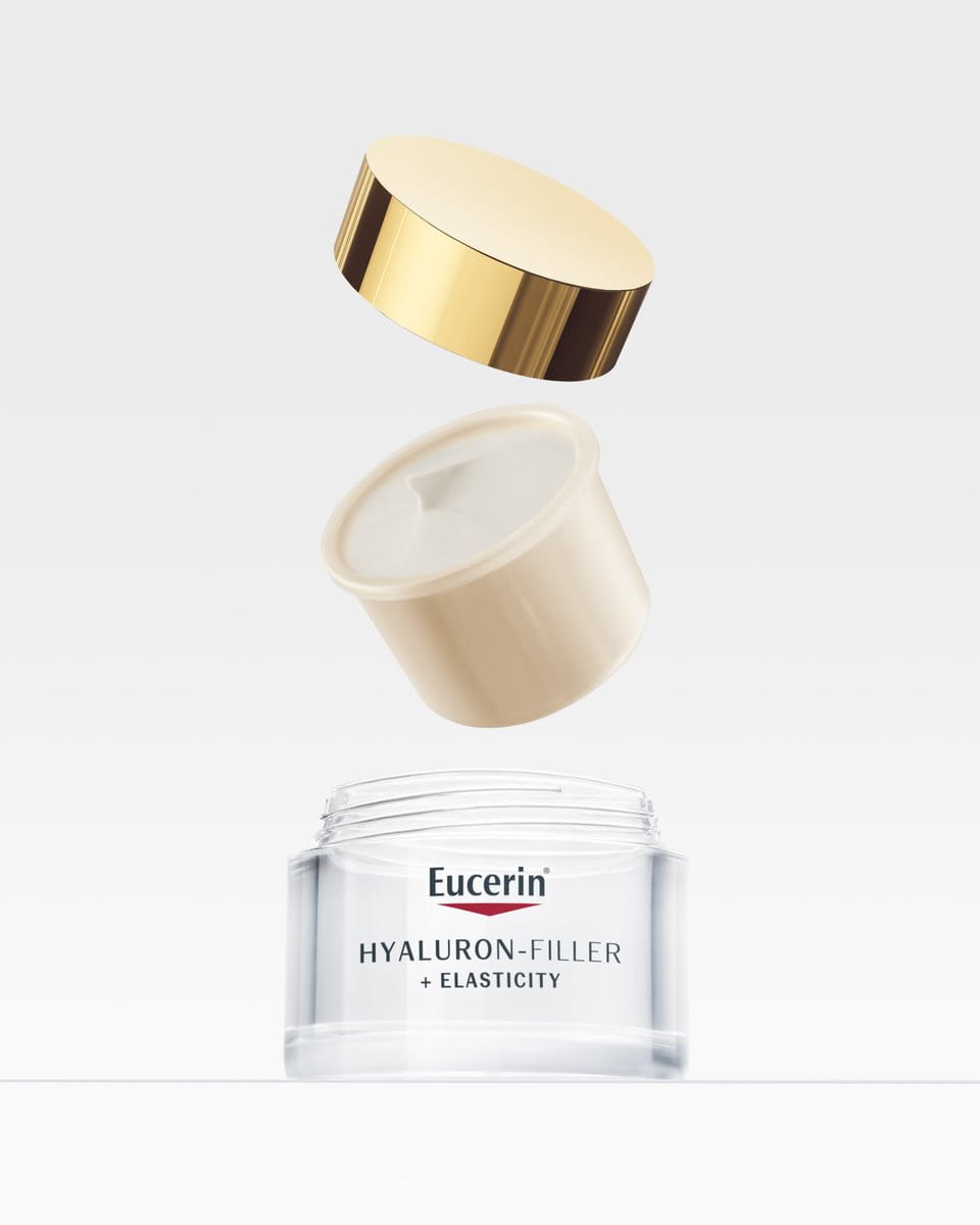 This Hyaluron-Filler +Elasticity SPF 30 Refill contains 90% less plastic compared to the regular Eucerin Face Care jar. By using this refill, you can help to reduce plastic waste and contribute towards a more sustainable product cycle. Compatible with all Eucerin Face Care jars.